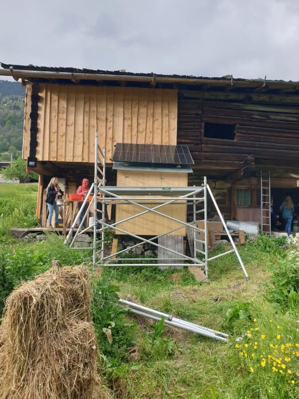 Dieser Stall aus dem Jahr 1741 soll restauriert, seine ursprüngliche Bausubstanz erhalten, anderes ins Ursprüngliche zurückgeführt werden. Wir arbeiten mit heimischen Materialien und traditionellen Techniken.