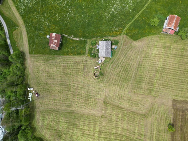 Auf dem Umschwung werden Garten, kleinere Äcker, ein Biotop angelegt, Trockenmauern errichtet, Kräuter, Bäume und Gemüse angepflanzt.